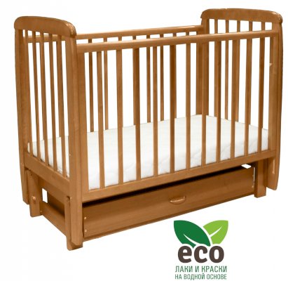 Кроватка "Соня 05" имеет механизм качания продольный маятник. Механизм качания фиксируется. Возможен вариант с ящиком.