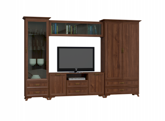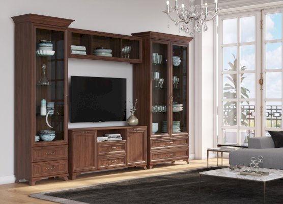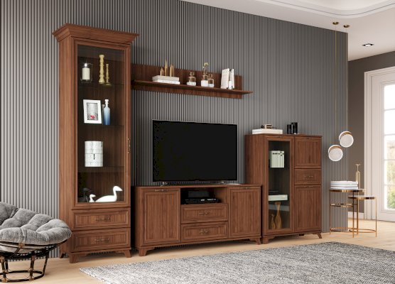Тумба имеет широкую столешницу и отлично подходит для телевизоров, у которых большая диагональ экрана. Оснащена выдвижными ящиками для хранения различных мелочей.
