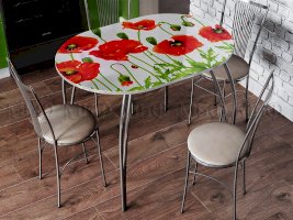 Овальный стол с фотопечатью дополнит абсолютно любую кухню, так как изображение стола Вы выбираете сами.