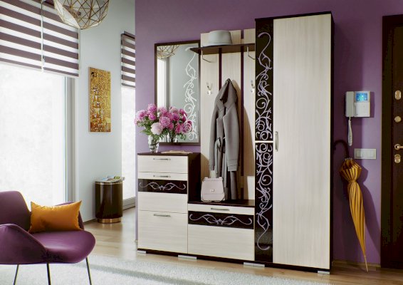 Створка шкафа может вешаться как на правую, так и на левую сторону. Шкаф имеет секцию с выдвижной штангой и полками. Для дополнительной фиксации шкаф следует крепить к стене на плоские навесы посредством дюбель гвоздей.