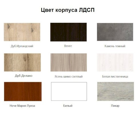 | Цвет | БЕЖЕВЫЙ / БЕЛЫЙ / ВЕНГЕ / ЗЕЛЕНЫЙ / КОРИЧНЕВЫЙ / СЕРЫЙ / СИНИЙ / ЧЕРНЫЙ / КОФЕ / КОРИЧНЕВОЕ ДЕРЕВО / СВЕТЛОЕ ДЕРЕВО |