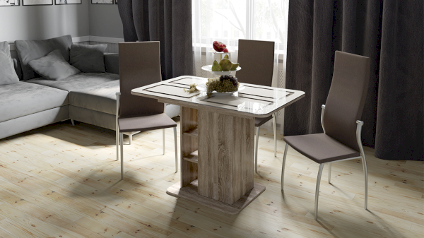 Цвет: Дуб Сонома трюфель/Стекло бежевое с рисунком