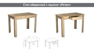 Обеденный стол с ящиком Ретро (Марибель) – товар доступен к покупке в интернет-магазине ryazanskiy-dommebeli.ru. Цена – 6 530 руб. без учета доставки. Стоимость дополнительных услуг и сроки получения мебели уточняйте у менеджера. Возможен безналичный расчет, оплата по карте на сайте.